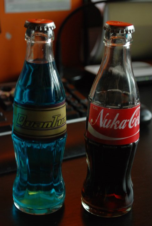 Poniżej prezentuję Wam coś, co wyśmienicie nadawałoby się na lato, gdyby nasze lato było normalne. Olga Ochocka-Matłacz wykonała sobie butelkę Nuka-Coli i jej odmiany, spotykanej w Fallout 3, znanej jakoNuka-Cola Quantum. Sami przyznacie, ze pomysł może być prosty, a jeśli się go dobrze wykona, to cieszy serce fana. Jestem pewien, ze Olga nie będzie narzekała na upały, nawet gdy na dworze będzie ponad 30 stopni. W końcu nic tak nie chłodzi, jak zimna Nuka-Cola.