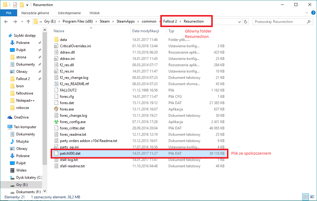 Przykładowa ścieżka:[dysk]:\Program Files (x86)\Steam\SteamApps\common\Fallout 2\Resurrection